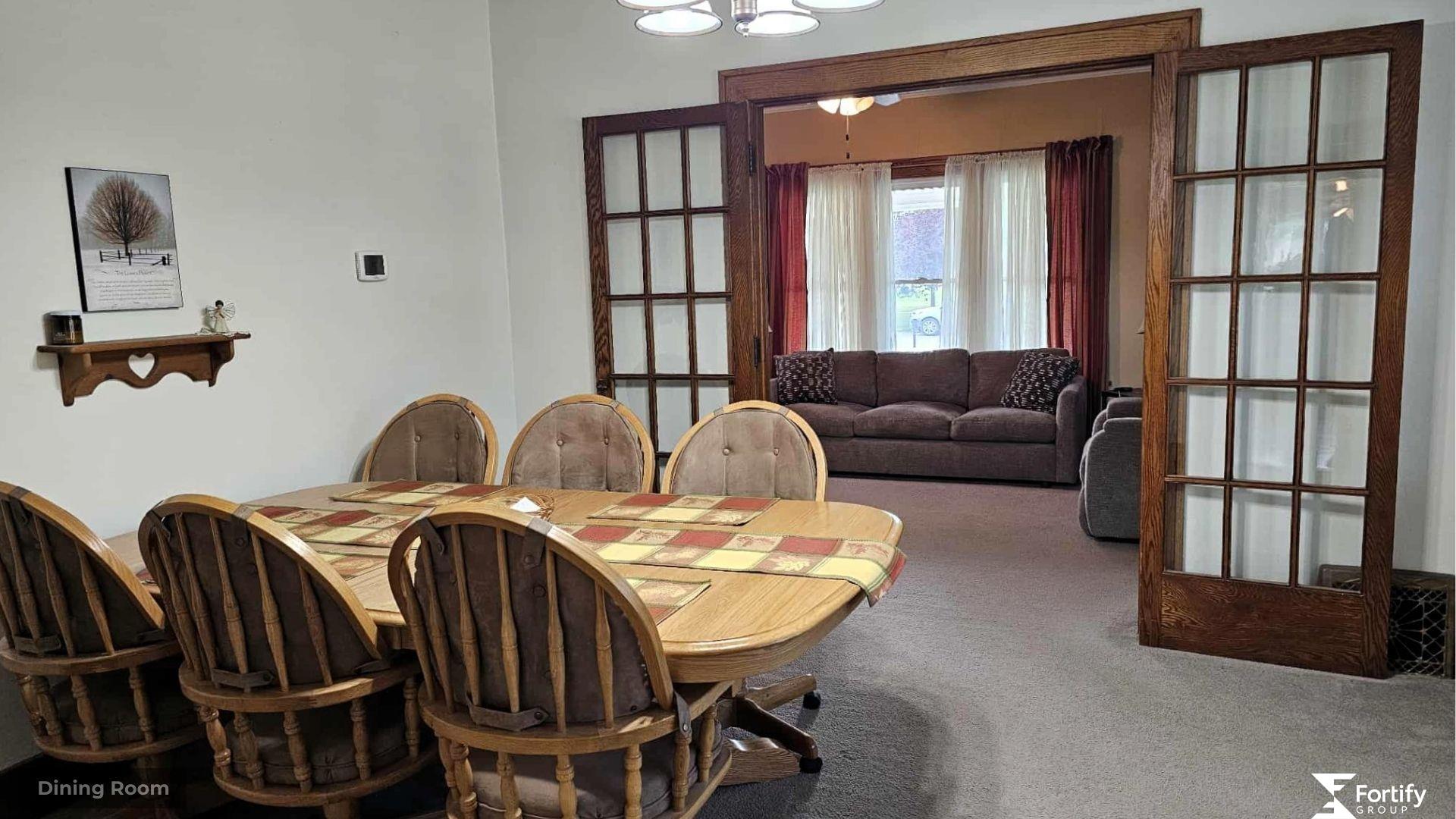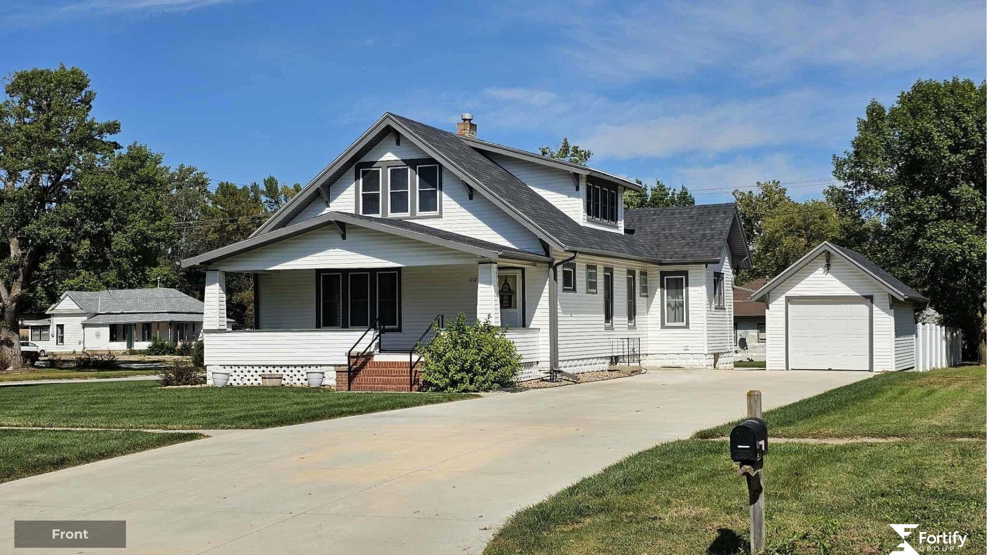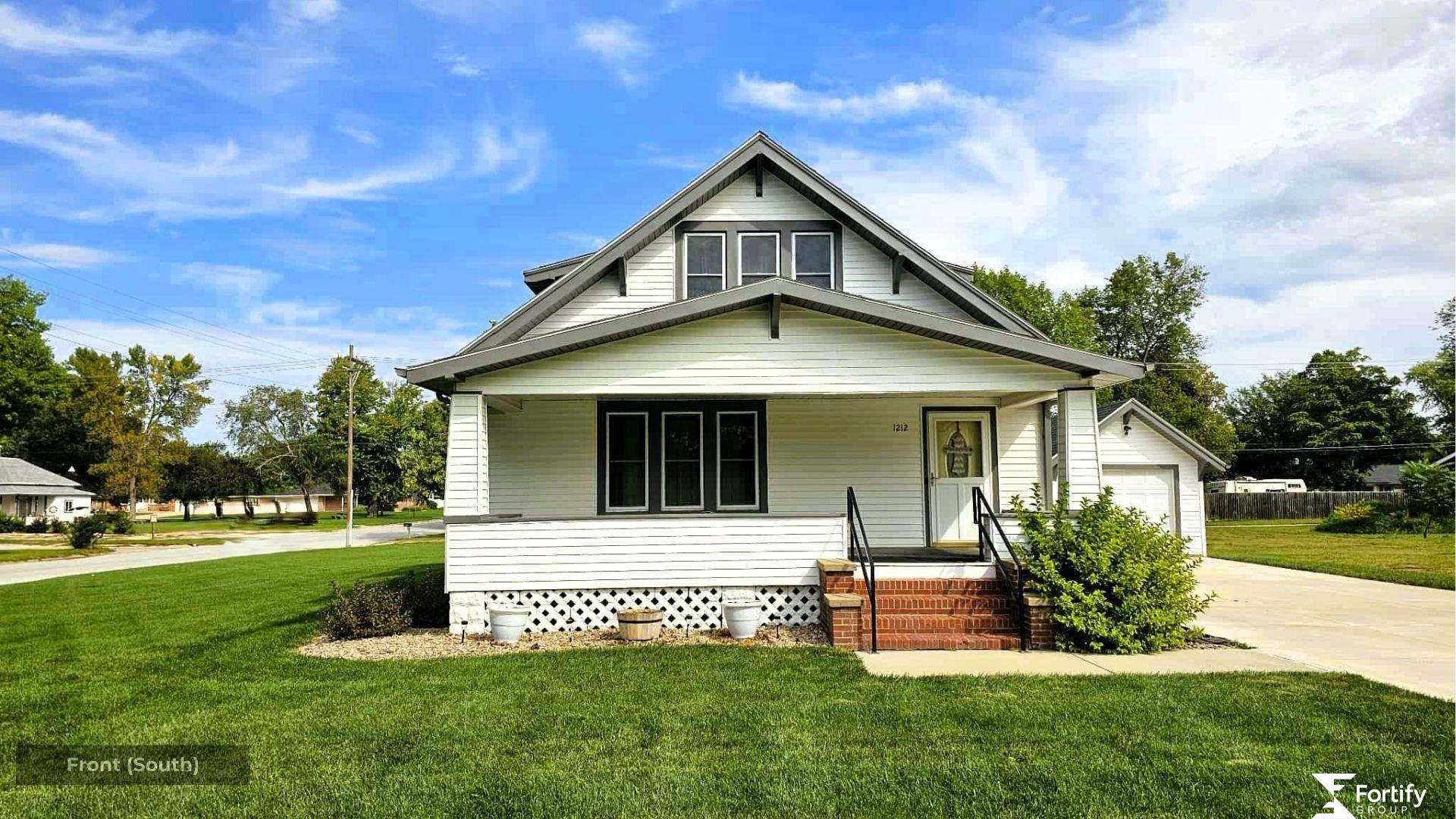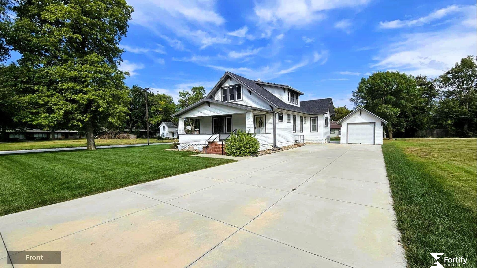 Historic 1925 Craftsman Home! This 5-bed, 2-bath charmer boasts beautiful original wood floors in the kitchen and bedroom #5, with more wood flooring believed to be under the carpets. Original woodwork, built-ins, and French doors showcase timeless craftsmanship, while spacious rooms offer comfort and function. Updates include a new roof, siding, gutters, fuse box, sidewalk, driveway, and main floor bath remodel (2022), new sprinklers (2021), plus a new patio and dishwasher (2024). Enjoy coffee on the covered porch, grilling on the patio, or gathering in the ½-block deep by 1/3-block wide yard. Alley access to the north adds convenience. The basement provides storage and an open area with LVP flooring—perfect for hobbies, play, or future finish. The expansive yard is a blank canvas with room to add a large garage, garden, or workshop. This well-cared-for Craftsman is packed with character and ready for your vision—contact your REALTOR® to schedule your showing today!