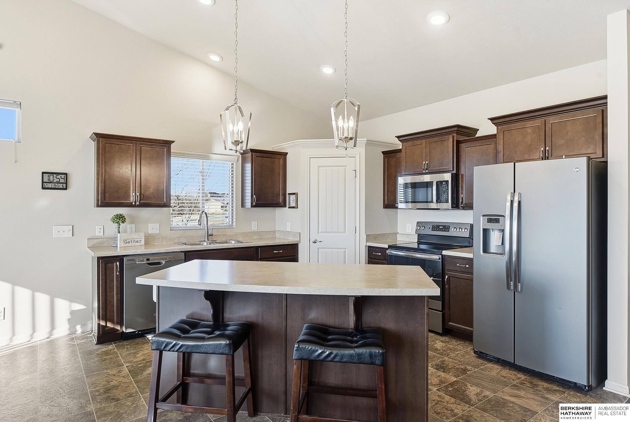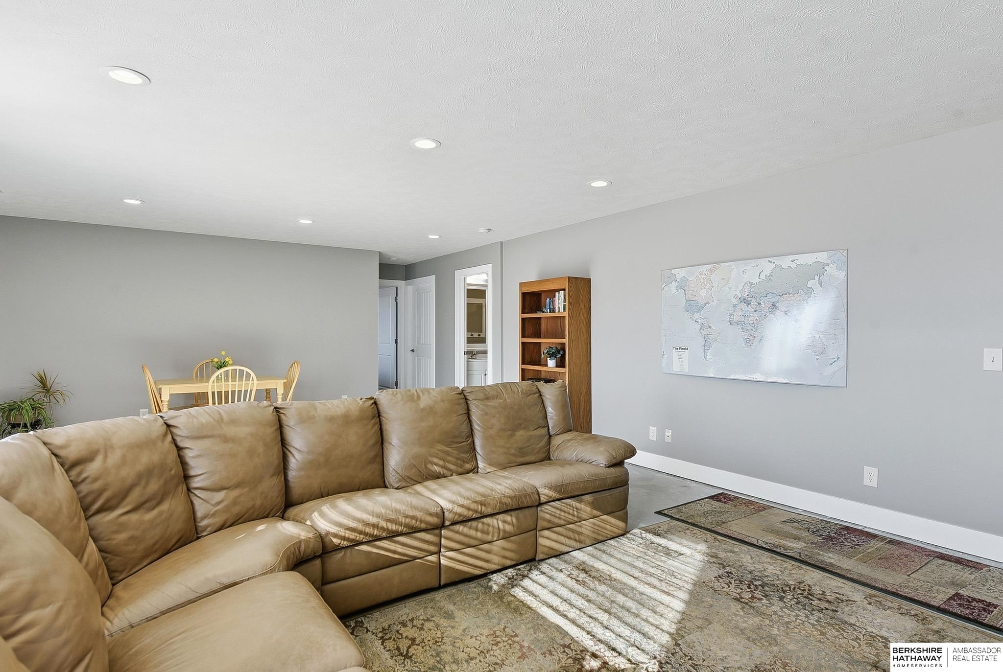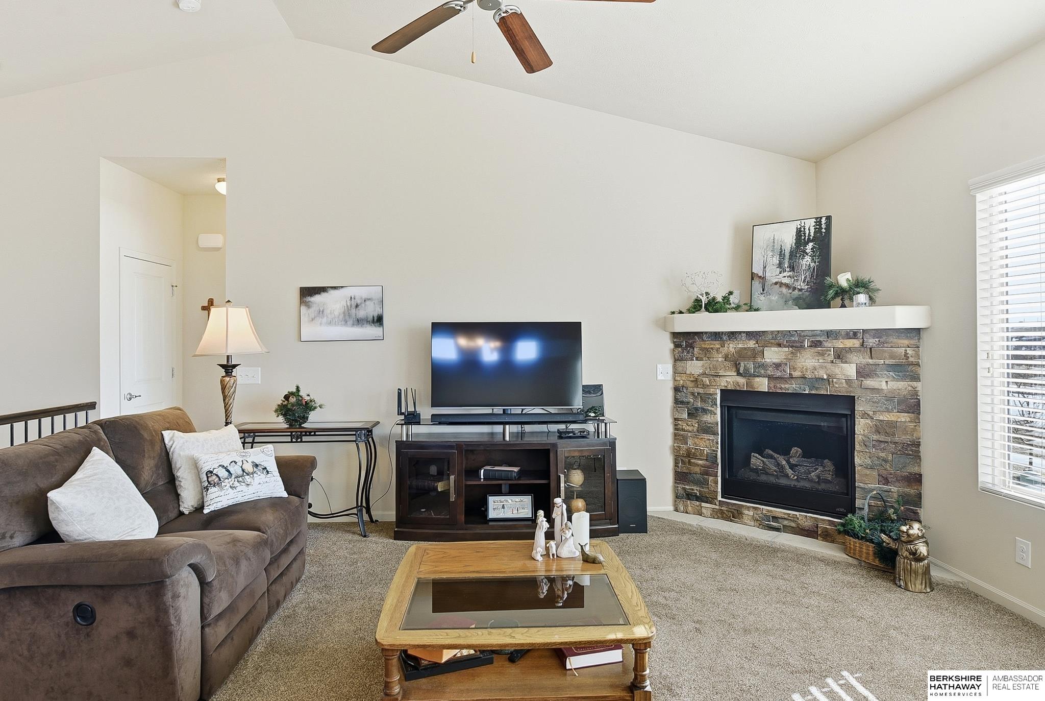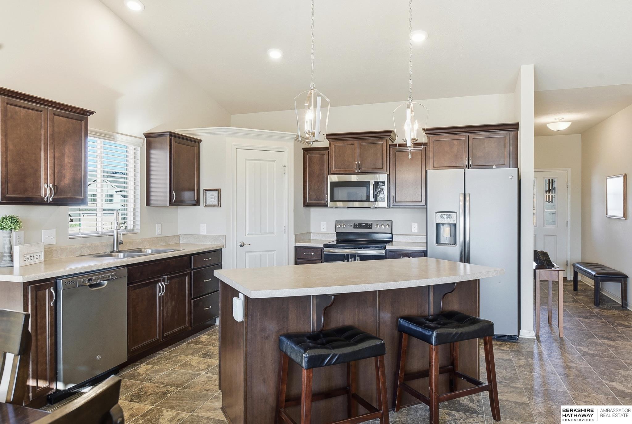 Enjoy easy, low-maintenance living in this bright, open villa in the Gretna School District. Built in 2018, this very well-maintained and clean home offers 2,409 finished sq ft with vaulted ceilings, a cozy fireplace, and neutral finishes throughout. The spacious kitchen features stainless steel appliances, a center island, and walk-in pantry, flowing into the main living areas—perfect for everyday living or entertaining. The primary suite includes double sinks and a unique walk-through closet with direct access to the laundry room. The finished walk-out basement adds a large family room, additional bedroom, bathroom, and generous storage or workshop space. Relax on the covered porch with no neighbors behind for added privacy. Low $100/month HOA covers lawn care and snow removal. Conveniently located near Chalco, Tiburon, I-80, Gretna Crossing, Hy-Vee, shopping, churches, and schools. AMA.