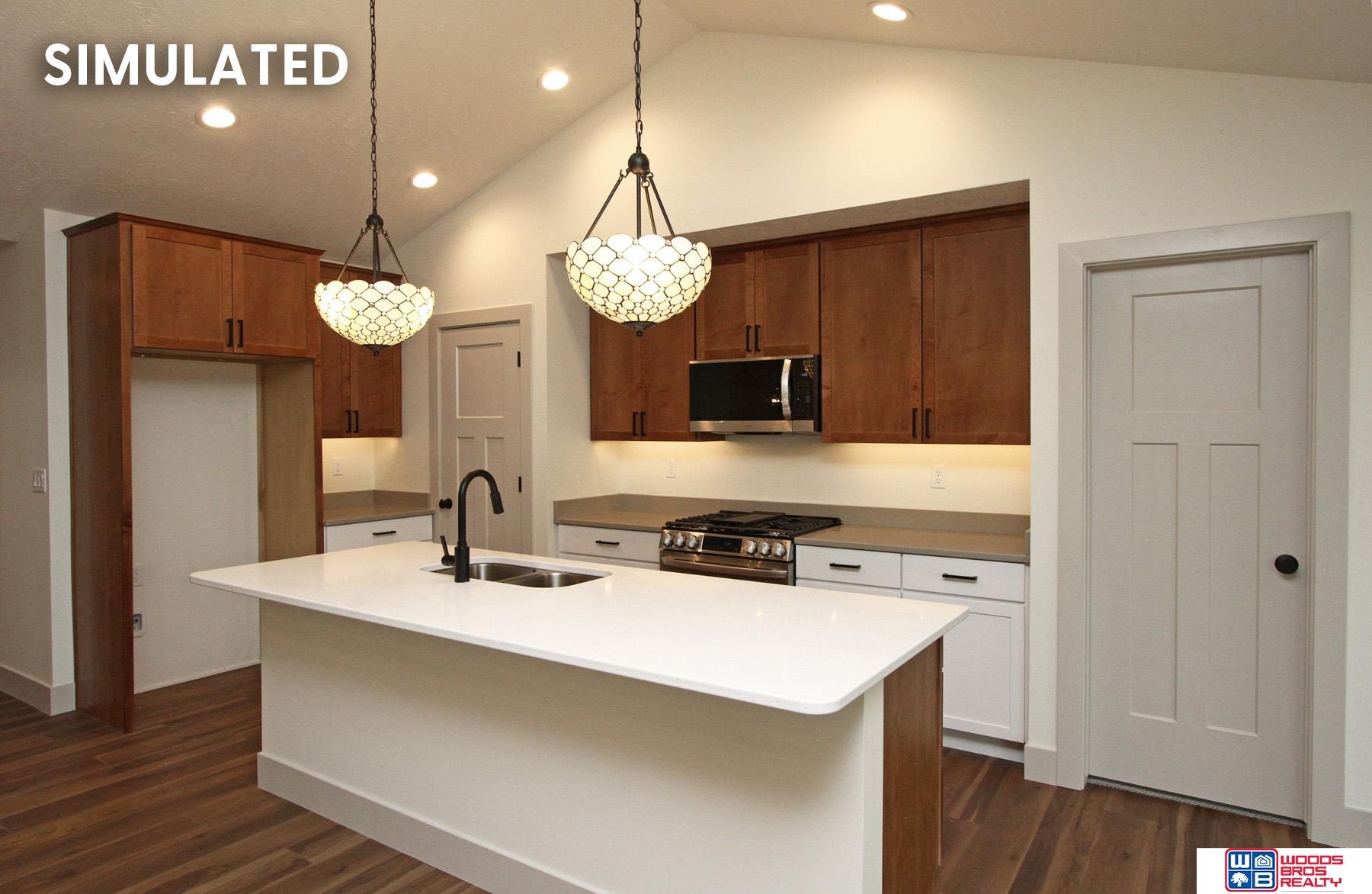 The newly designed ranch by JD Builders Inc. features more than 2,800 finished sq.ft. with 6 bedrooms, 3 bathrooms and 3 stall garage. Space on the main level is efficiently maximized by an open kitchen/living/dining with vaulted ceiling in a great room. The kitchen boasts a center island with breakfast bar, granite counter tops with tile backsplash, birch cabinets with crown molding, stainless steel appliances and corner pantry. Master suite features a bathroom with double sink vanity, tub/shower and walk-in closet. Mud room with lockers separate the house from the garage. The laundry room is conveniently located on the main level. The finished basement has a rec room, three additional bedrooms, a full bathroom and room for storage. The oversized 3-stall garage has plenty of room for storage. Other features included a 17 x 9 covered patio, full Sod, UGS, sump pump and garage door opener. The house is located in Wilderness Hills subdivision.