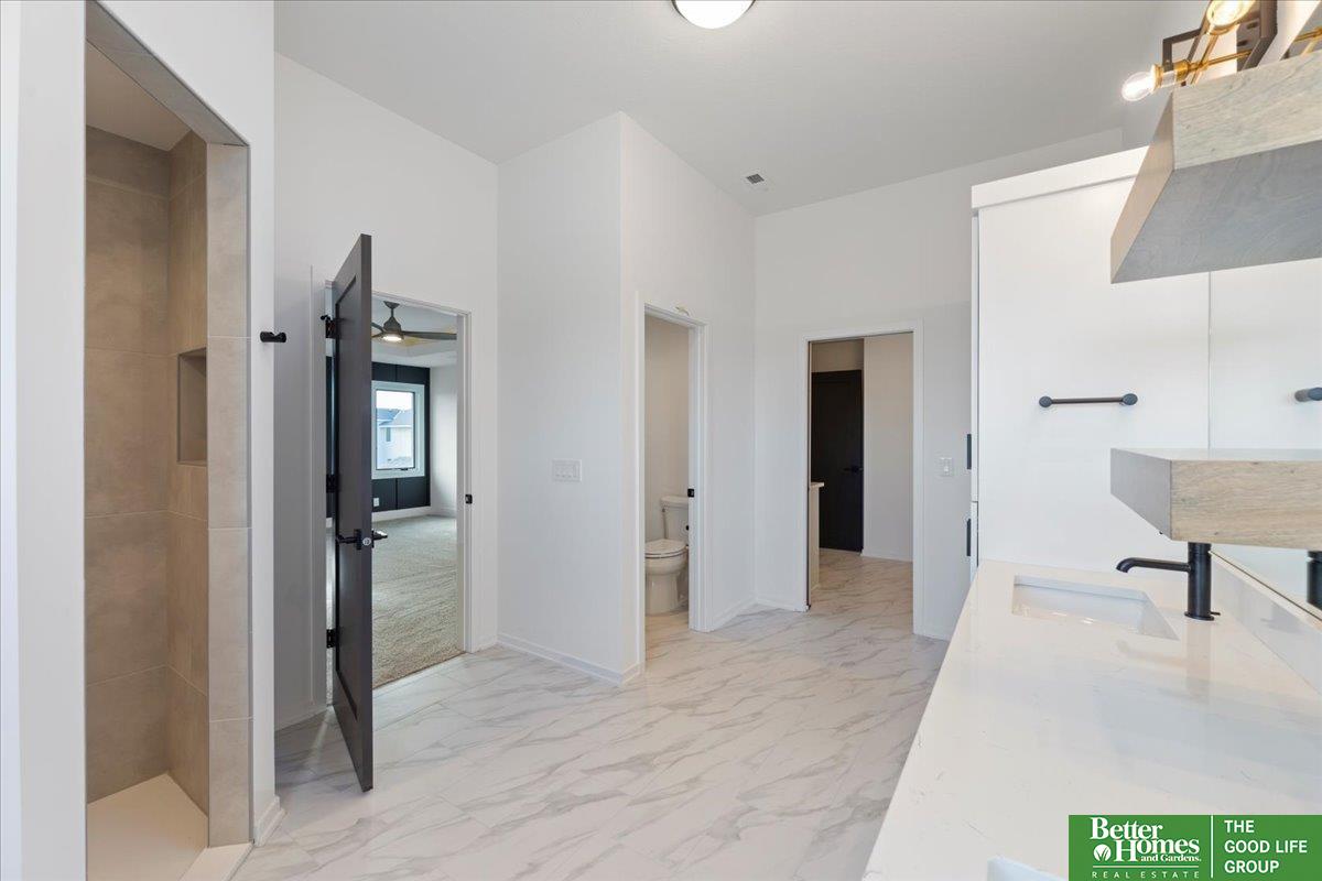 You'll love the modern finishes & style in this 2 Story Showcase Home. This Impressive kitchen that features a built-in full-size Refrigerator & Freezer, 36" gas cooktop, wood hood & custom shelving, quartz countertops, & large walk-in pantry w/ 2nd wall oven & coffee bar. Large dinette w/ cathedral ceiling & shiplap wall. Private drop zone area. Beautiful great room w/ accent ceiling, 60" fireplace, shiplap, & built-in cabinets. Two flex rooms on main floor. All bedrooms have direct bathroom access. Spacious primary suite w/ lighted trayed ceiling, free standing tub, nicely sized closet, w/ access to laundry room. Finished Basement features large Rec Room with 2nd FP & wet bar. The basement features a bedroom with 3/4 bath. Zoned HVAC system, insulated garage w/ outlet for future heater. Estimated completion date 10/22/2025. Pics of same floor plan but another home. List agent has equity.